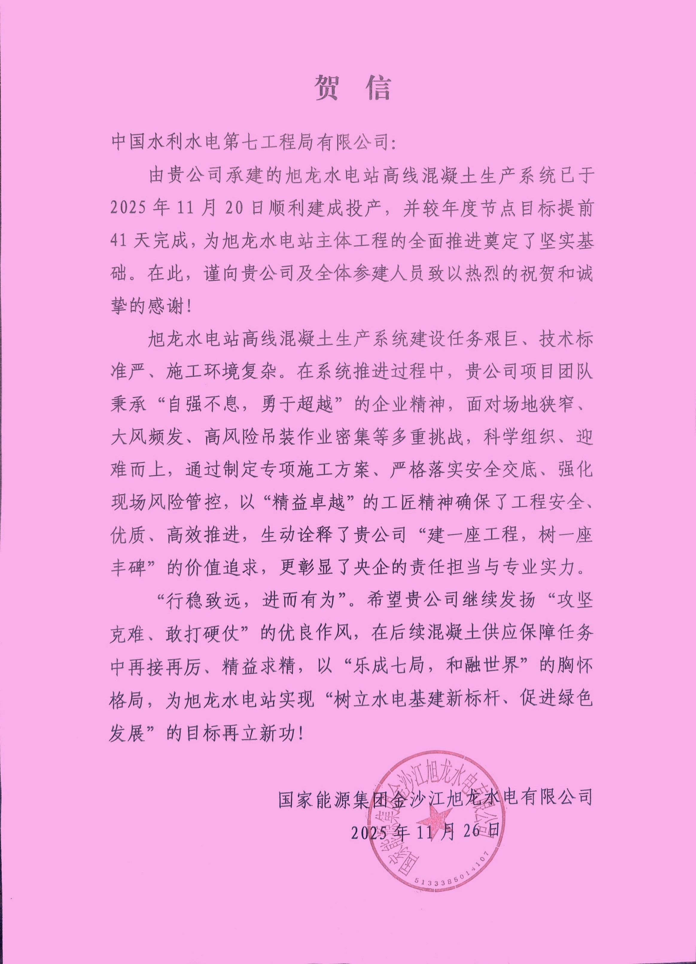 本网迪庆消息(姬文琪 报道)11月29日,由水电七局承建的旭龙水电站高线混凝土生产系统收到国家能源集团金沙江旭龙水电有限公司发来的贺信,对该系统提前41天建成投产表示热烈祝贺。 信中指出,该系统建设任务艰巨、技术标准严、施工环境复杂。项目团队面对场地狭窄、大风频发及高风险吊装作业密集等多重挑战,科学组织、迎难而上,通过制定专项方案、严格安全交底、强化风险管控,以精益卓越的工匠精神确保工程安全、优质、高效推进,为旭龙水电站主体工程全面推进奠定坚实基础,生动诠释了“建一座工程,树一座丰碑”的价值追求。 项目团队表示,将珍惜荣誉,继续发扬攻坚克难、敢打硬仗的优良作风,在后续混凝土供应保障任务中再接再厉、精益求精,为旭龙水电站实现“树立水电基建新标杆、促进绿色发展”目标贡献力量。(责任编辑 王晞羽) |