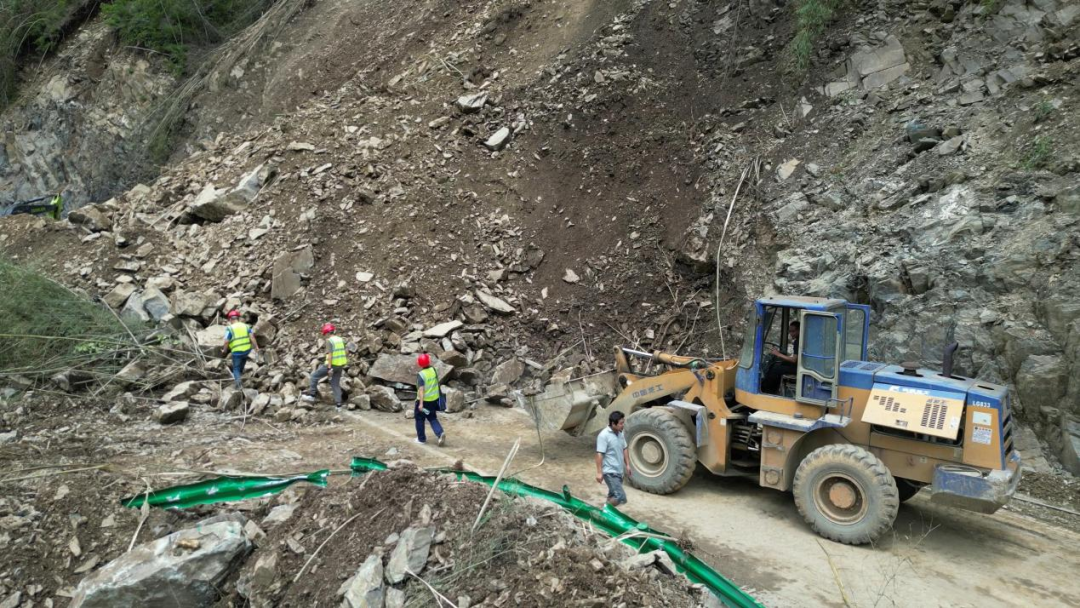 暴雨突袭,塌方阻路 8月9日,一场突如其来的持续强降雨天气袭击了我县,李庙镇水田坪村闫坪至胡家坪路段突发山体塌方,交通中断。这条道路是南漳抽水蓄能电站项目物资运输的生命线,也是沿线村民进出的唯一通道。 紧急响应,昼夜奋战 险情发生后,李庙镇政府迅速启动应急响应机制,联合湖北南漳抽水蓄能电站项目方,第一时间调配机械和人力,投入到紧张的抢修保通工作中。从8月10日早上6点多开始,大型工程机械便紧张作业,与工程车辆协同配合,高效清除并转运崩塌的岩石垮方。