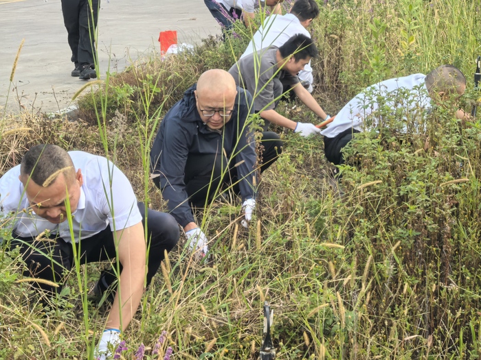 本网西昌消息(徐颖 报道)10月15日,西昌区域项目管理部组织开展“除草护绿‘青’尽全力”主题党日活动,党员、团员及青年员工共20余人参加。 活动现场,全体人员充分发挥不怕苦、不怕累实干精神,手持镰刀,分工协作,迅速投入到劳动中,有序开展除草作业。有人俯身挥镰割除高处杂草,有人负责清运归堆,默契配合中尽显团队协作力量。尽管汗水浸湿衣襟,泥土沾满双手,但全员热情不减,忙碌身影与不时传来欢声笑语交织在一起,形成一派热火朝天劳动景象。 此次活动有效美化营地环境,进一步增强团队凝聚力和协作意识。参与者纷纷表示,将以实际行动践行绿色发展理念,为西昌区域生态建设和项目管理注入更多青春力量。(责任编辑 曾润琪) 活动现场 |