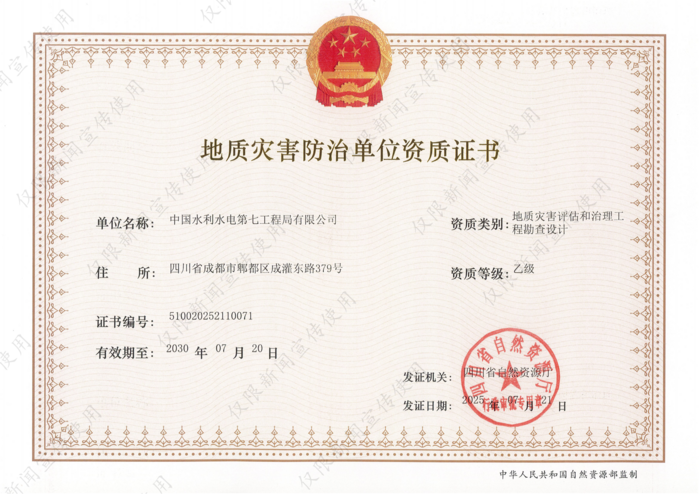 地质灾害评估和治理工程勘查设计乙级资质