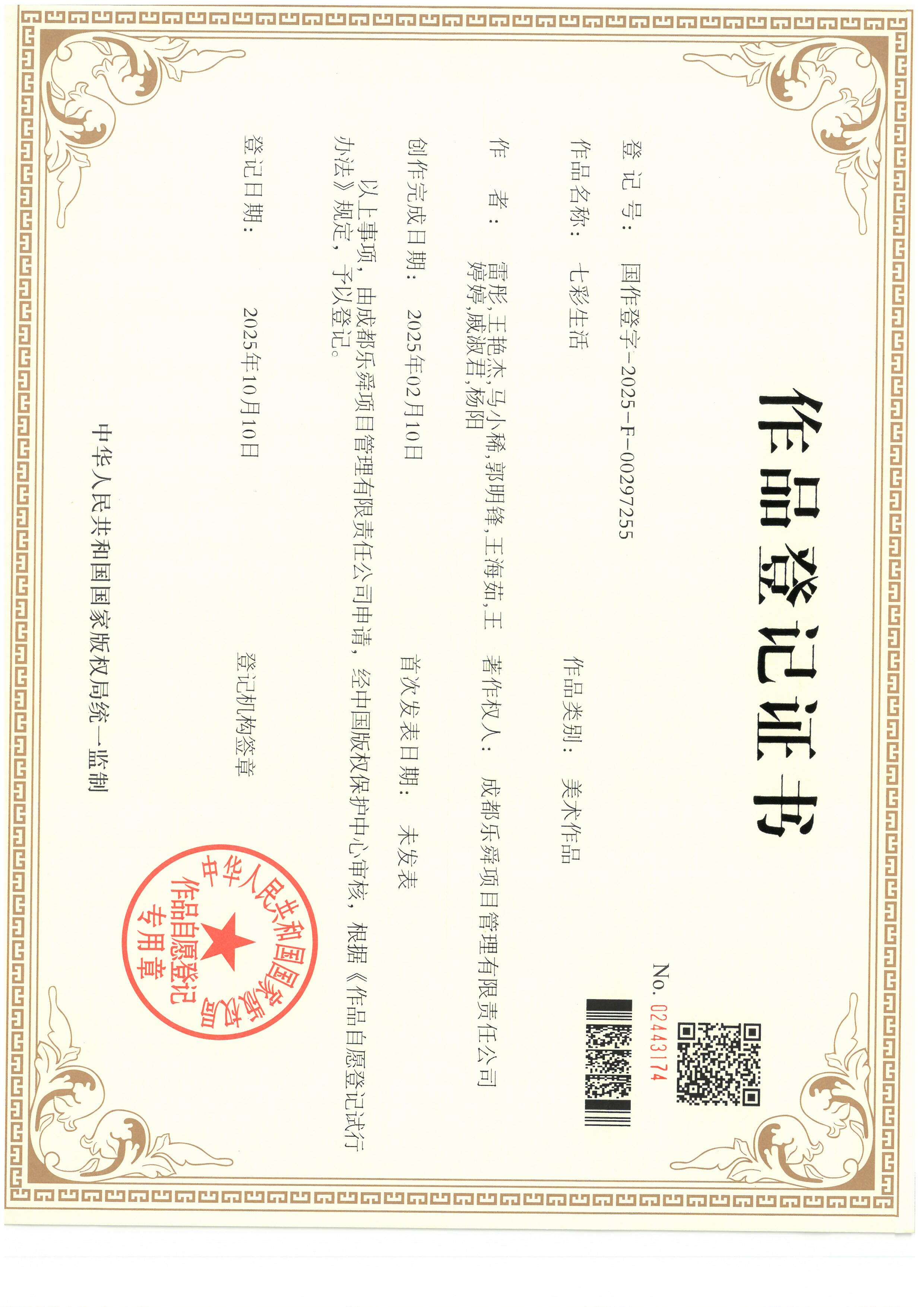 乐舜公司《七彩生活》获美术作品版权 |