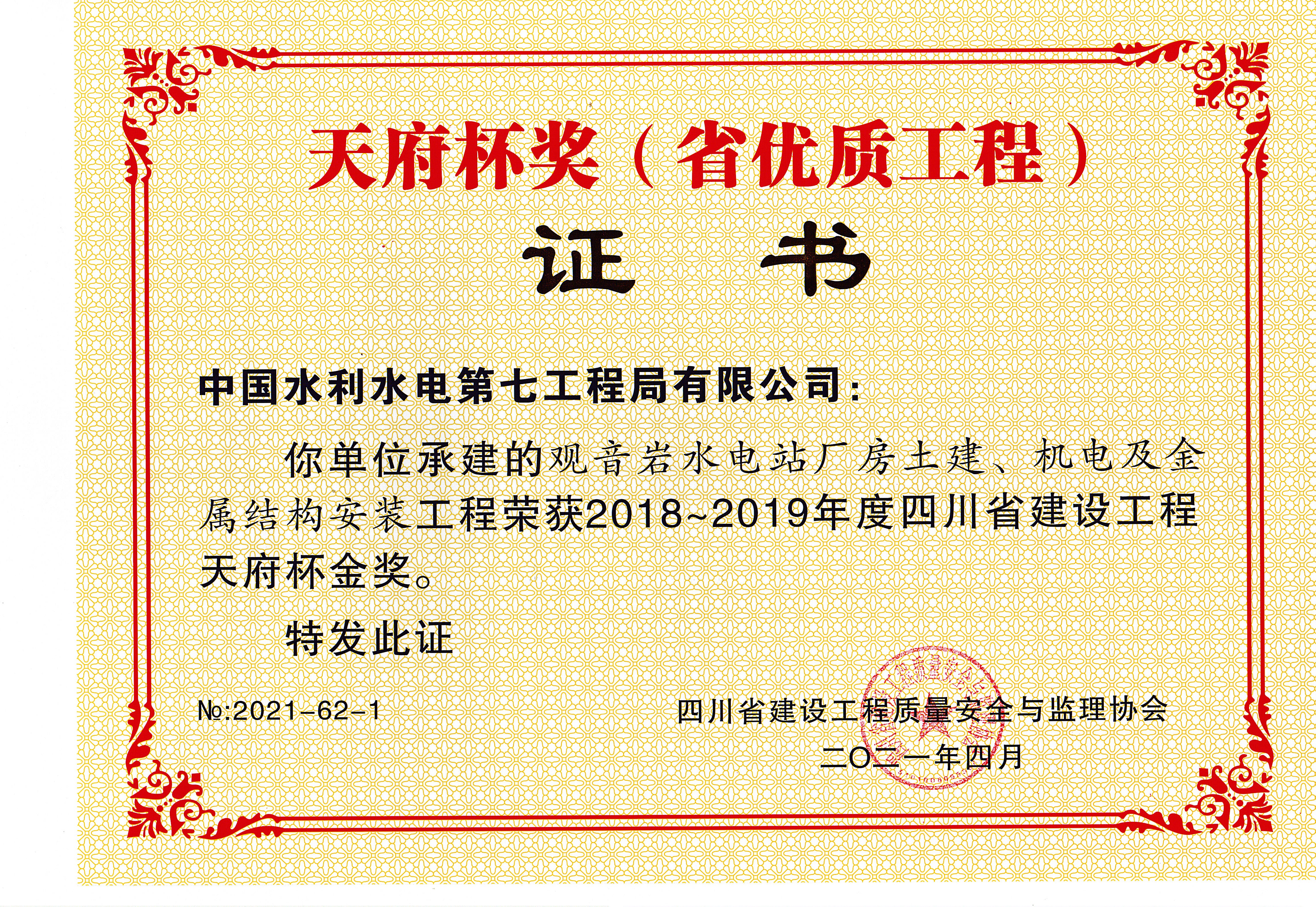 观音岩水电站天府杯金奖